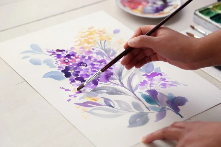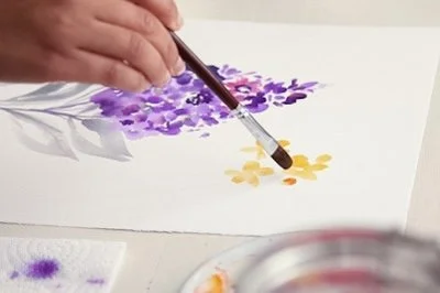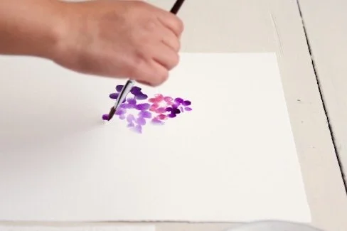 These florals can be tricky to paint because of their unique nature. Hydrangeas are made up of hundreds of tiny flowers. However, instead of trying to paint them all individually, it’s a good idea to get a few of these floral shapes within your painting and then you can blur out the rest.