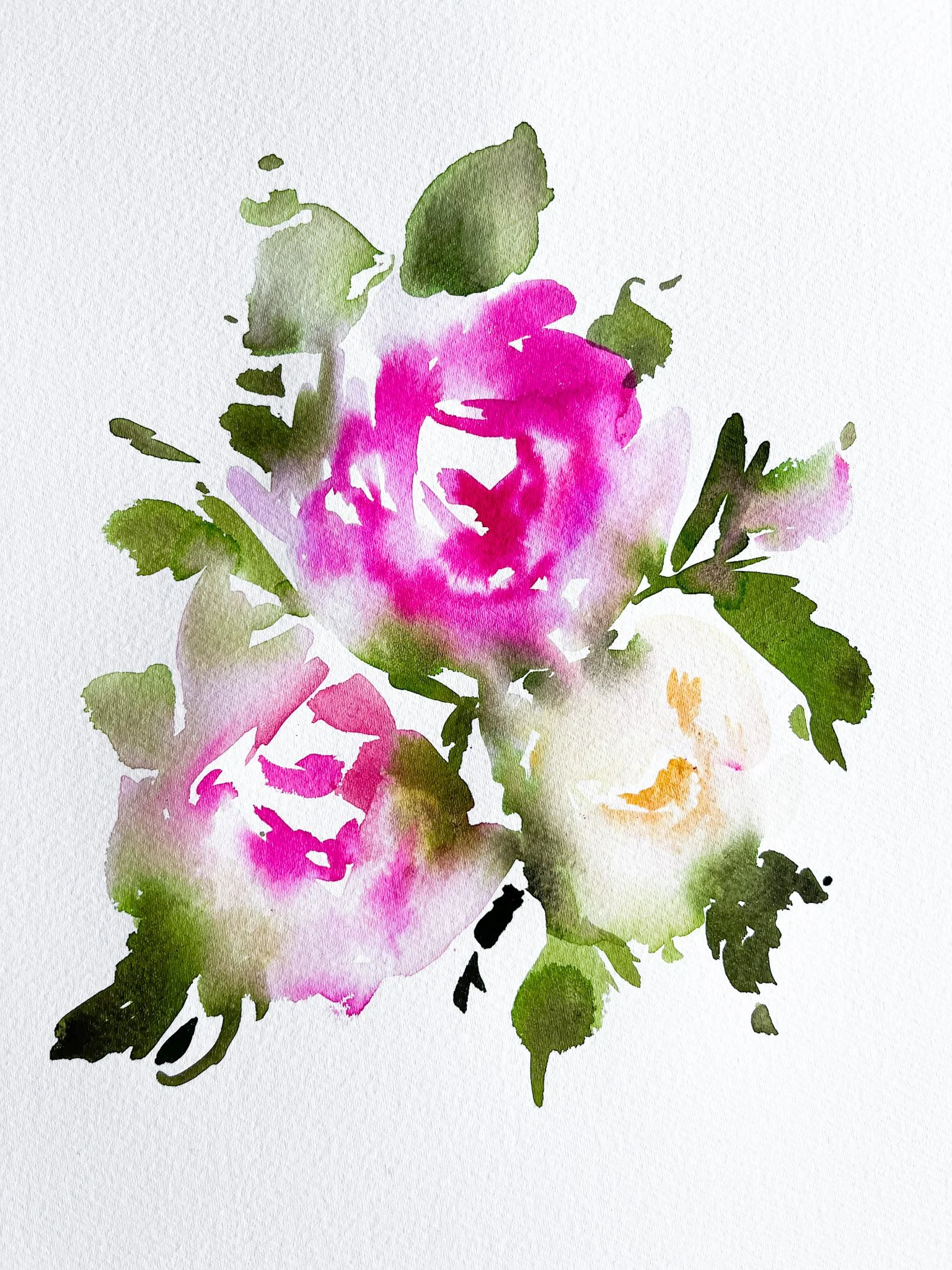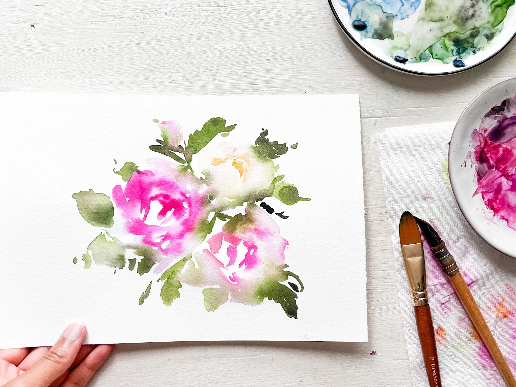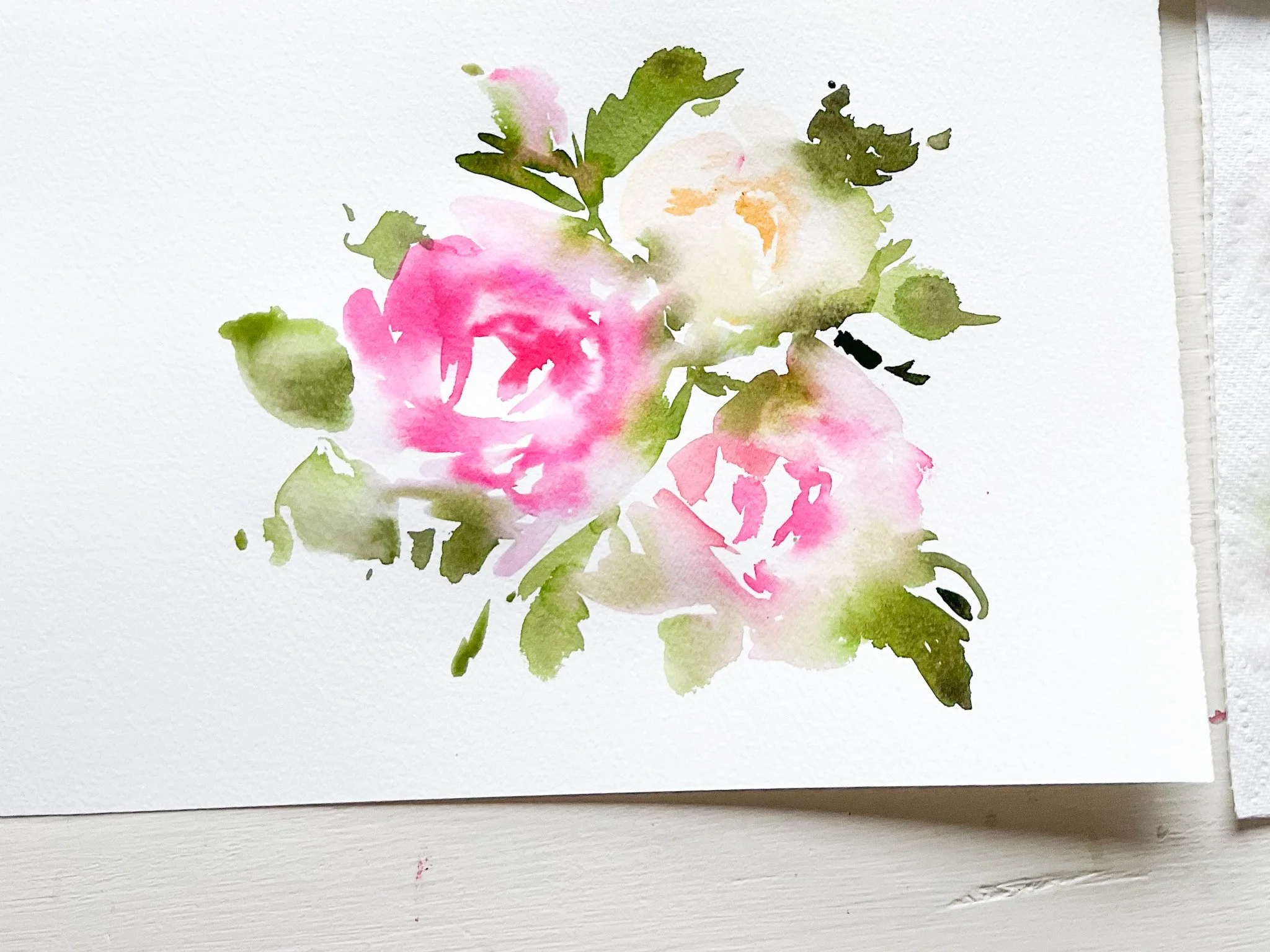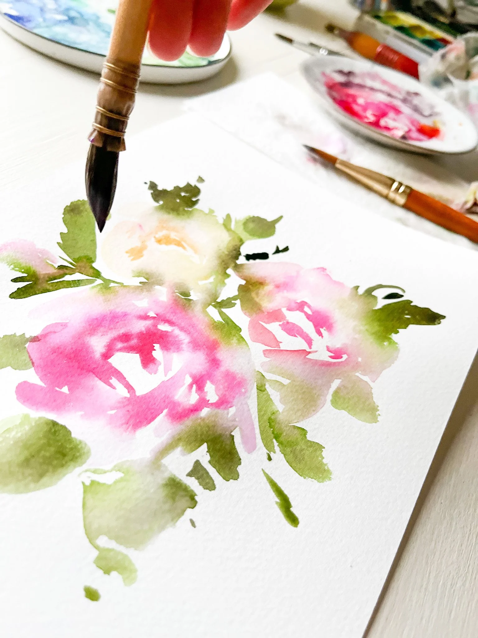 Painting roses in a loose watercolour style is a good place to start if you are a beginner as there is no need to paint all the intricate details. Let me show you how I painted these sweet flowers. To get started, check out the materials I used below: