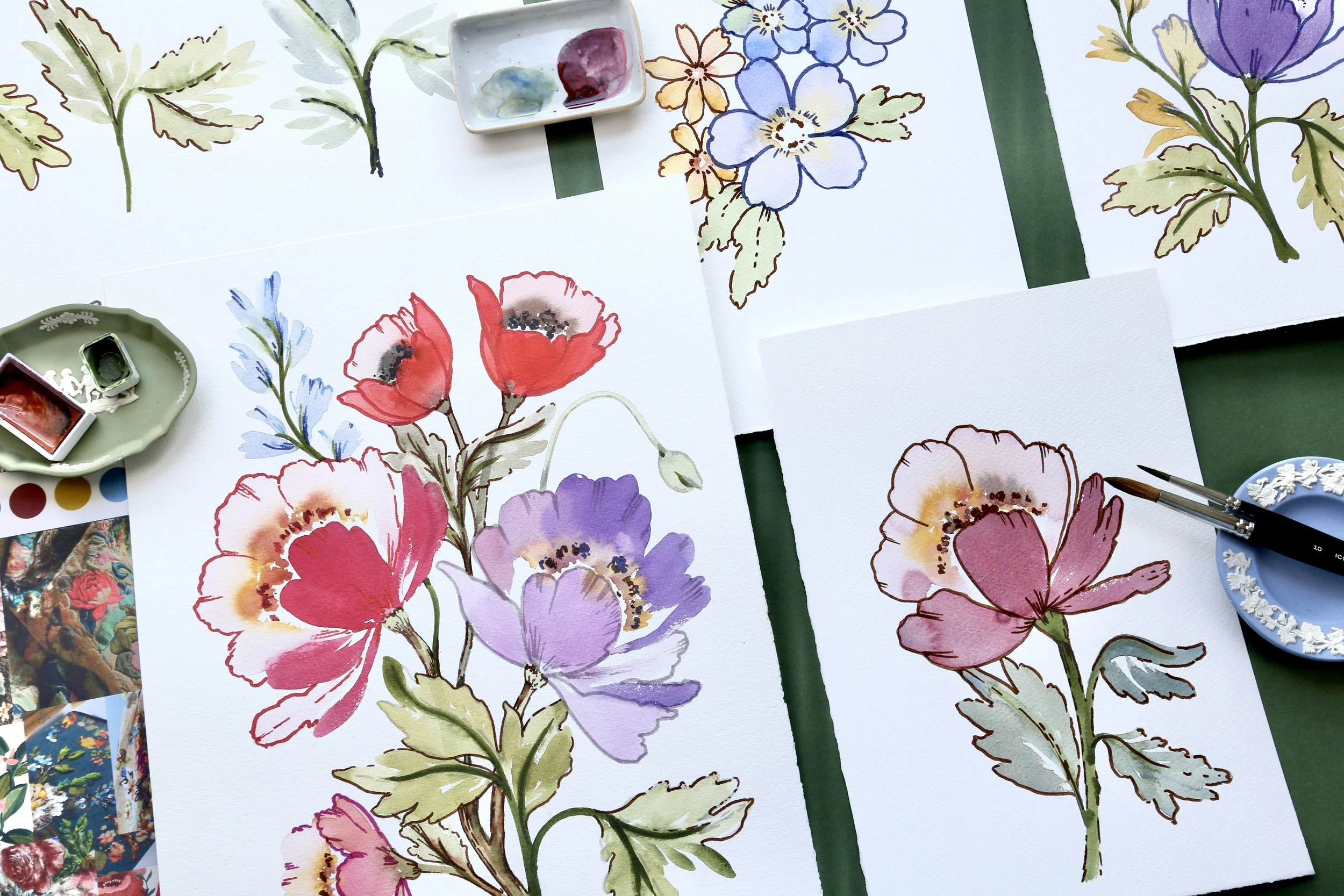 We’ll be painting Heritage Style Florals — loose watercolour with delicate pen details for a vintage-inspired style.