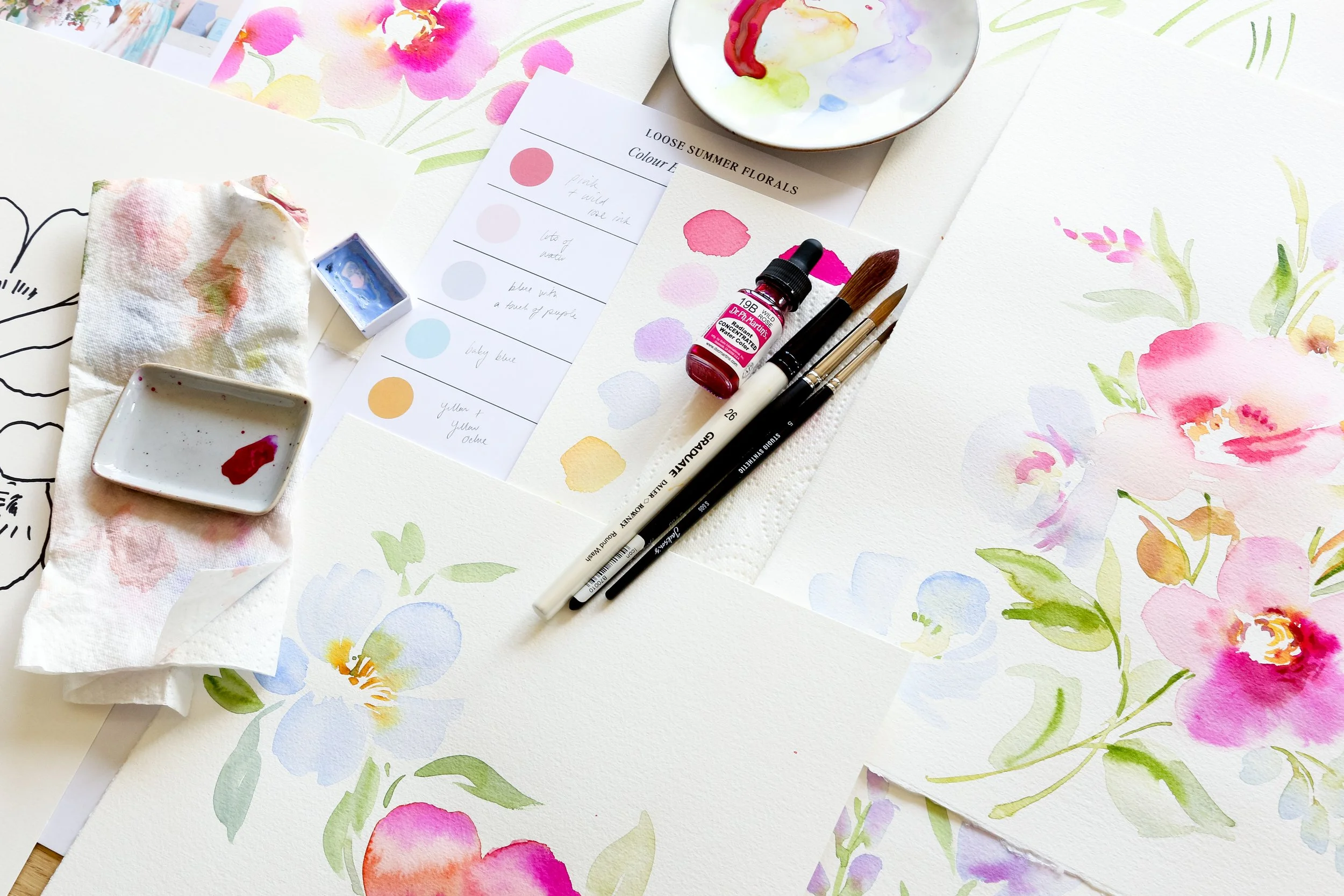 Day 3 - We’ll be diving into open florals, and getting really loose with our hand to create a finished painting. Live event through a private Facebook group 3pm-4pm BST time (UK time). Replays will be available afterwards inside the portal.